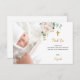 Eine moderne und elegante Taufe danke Ihnen Karte. Ein schick weißer Hintergrund mit einem farbenfrohen, weißen Blumen, Eukalyptusgrün und goldenen Imitaten Blätter. Personalisieren Sie und fügen Sie Ihr Foto des Kindes, danke Ihnen Notiz und Name.