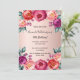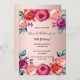 Eine elegante Einladungskarte für eine 50. Geburtstagsparty (oder jedes Alter). Mit zeitgenössischem Rosa, lila und in Rose goldfarbenen Blume, Blumen als Dekoration. Eine schicke Rose goldener Farbverlauf Hintergrund. Der Name wird mit einem schwarzen handgeschriebenen Stilskript geschrieben.