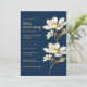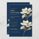 Ein luxuriöses marineblaues Blau und eine goldene 50. Hochzeitsfeier laden Sie zu einem stilvollen und raffinierten Jubiläum-Party ein. Dieses elegante Design der Blume besticht durch ein reizvolles und glamouröses Design in der Blume mit weißem und goldfarbenem Glitzer auf marineblarem Hintergrund. Passen Sie dieses Design mit Ihrer Nachricht und personalisierten Informationen an. Alle Designs sind gedruckt.