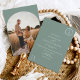 Klassisches, elegantes und weiches blumengrün-schimmerndes Foto mit kleinen, geblüht, blumengeschmückten Konturen, das Paar monogram hinzufügen, mit boho sage grün, eine klassische Hochzeitseinladung mit einer modernen Drehung, fügen Sie Ihr Foto auf der Rückseite in Bogenform.