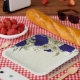 Schöne romantische Papiertafel mit royal blauen und beigen Blume und einigen Blätter. FÜR WEITERE PRODUKTE klicken Sie auf die Sammlung oben oder kontaktieren Sie mich