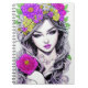 Eine schwarz-weiße Linie zeichne einem hübschen Mädchen, das mit bunten Blume bedeckt ist