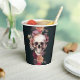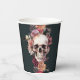 Mit einem gotischen Schädel mit blassen Aprikosen, schwarzen und bordeauxfarbenen Blume auf schwarzem Hintergrund. Entspricht der Party-Kollektion "Tod ihrer 20er".