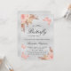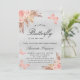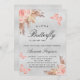 Für eine moderne Babydusche im bohischen Stil. Ein Imitat silber aussehender Hintergrund. Die Einrichtung besteht aus Rose-Gold und rosa Blumen, Rose, Pampas-Gras und Schmetterlingen. Personalisieren und fügen Sie einen Namen und Party-Details hinzu.