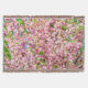 Blütenstaub. Blüten blühende Pflaumensträucher, auch bekannt als blühende Mandeln. Rosa festliche Blume vor blauem und grünem Hintergrund. Frühling Thema. Das ist ein Pflaumenbaum, das ist ein Mandelbaum, das ist ein Kirschbaum. Dieser Baum ist alles. Es stammt aus der China und wird wissenschaftlich als Louiseania Triloba, Amygdalus triloba und Prunus triloba bezeichnet. Es wird als eine Kirsche mit Schrumpf betrachtet, manche nennen es Sakura. Sehr elegante und dekorative Pflanze. Horizontale oder landschaftlich orientierte Produkte und Souvenirs.