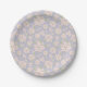 Genießen Sie Ihre Lieblingsspeisen auf dieser geblümten Papiertüte, die auf einem Lavendelboden mit blütenrosa Blume aufwartet.