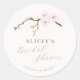 Delikate niedliche Kirschblüte Blume elegante Frühling oder Sommergarten hellrosa Brautparty personalisiert Aufkleber mit Salbei grün Kalligraphie Skript.