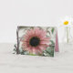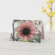 Diese Karte wird bald gut, zeigt ein schönes Foto von einer blass rosa Sonnenblume. Die Sonnenblume ist von Natur aus rosa und die Blätter haben einen hellrosa Außenring und einen dunkelrosa Innenring. Die Mitte, in der die Samen sind, ist schwarz. Dieses Foto wurde in einem Garten aufgenommen.