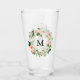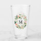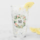 Monogram Glastumbler mit einem blumenblumenreichen Wasserkranz aus rot-rosa-weißen Blume mit üppig grünen Blätter und Blattakzenten. Personalisieren Sie diese, indem Sie Ihr Monogramm hinzufügen. Der blütengrüne Schuster macht ein großartiges personalisiertes Geschenk!