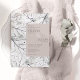Diese 5" x 7" Hochzeitseinladungen zeichnen sich durch ein abstraktes Blatt-Design in staubigen Grau- und Blütentönen mit Platzhaltern aus: "Wir laden Sie ein, die Hochzeit von", die Braut und den Bräutigam Vor- und Nachnamen, Datum, Uhrzeit, Ort der Hochzeit und Anschrift, "Empfang zu folgen".
