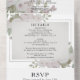 Alles in einer Dreifachkarte, mit der Einladung zur Hochzeit, Details und UAWG. Design Merkmale der rosa rot-grau Aquarell Blumen Hochzeitseinladung. Dies verleiht einem Vintagen, eleganten Look. Personalisieren Sie diese Vorlage, um Ihre Informationen auf der Vorder- und Rückseite der Karte hinzuzufügen. Klicken Sie, um weitere Änderungen vorzunehmen. Alles ist anpassbar.