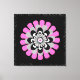 Eine flauschige Blume mit mehreren Blütenschichten in Schwarz, Grau, Weiß und Rosa.