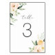 Blütenrot Peach Greenery Wasserfarbe Moderne Elegante Hochzeitsreise-Tischnummer