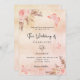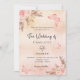 Eine Rose Gold, rot rosa rustikale Imitate metallisch aussehen Hintergrund. Die Einrichtung besteht aus Rose-Gold und rosa Blumen, Rose, Pampas-Gras und Schmetterlingen. Personalisieren und hinzufügen von Namen und Details.