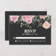 Blütenschwarz und rot-rosa Hochzeit RSVP Karte