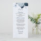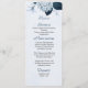 Dusty Blue Hydrangea Lilie Blume mit wunderschönen marineblauen Blätter botanisches Hochzeitsmenü Die Rückseite der Karte : elegante staubblaue Lilien auf marineblau Hintergrund Die Glitzer Details werden simuliert