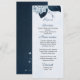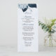 Dusty Blue Hydrangea Blume mit wunderschönen marineblauen Blätter botanisches Hochzeitsmenü Die Rückseite der Karte : elegante staubblaue Lilien auf marineblau Hintergrund Die Glitzer Details werden simuliert