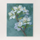 Eine zarte Abbildung eines blühenden Zweiges mit weißen Frühlingsblumen vor blaugrünem Hintergrund. Weiche Blätter, gelbe Farbtupfer und glatte Pinselstriche schaffen eine Atmosphäre der Leichtigkeit und Harmonie. Die künstlerische Komposition vermittelt das Gefühl des Frühlingserwachens der Natur. Ideal für Design, Druck, Dekoration und Urlaubsmaterialien.