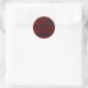 Dieses runde Aufkleber-Blatt zeigt ein schwarzes Fraktal mit rot-venenähnlichen Strukturen, das mich daran erinnert, dass aus winzigen Venen Blut austritt.