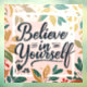 "Floral Confidence" ist ein inspirierend Design mit dem Satz "Glaube an dich selbst" in eleganter, fließender kursiver Typografie. Der Text ist mit schönen Blumenakzenten geschmückt, die eine Touch der Schönheit und Eleganz der Natur hinzufügen. Die Kombination aus motivierend Wörtern und zarten Blume schafft ein erfreuliches und ästhetisch ansprechendes Design.