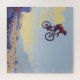 Dieser junge BMX-Fahrer fliegt nach einem Sprung von einer kleinen Klippe durch die Luft.