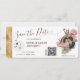 Destination Mexico Beach Wedding Boarding Pass Ticket Gold Flugzeug Save the Date mit Herz und Flugzeug Ikone mit Glitzer Rose Gold Weltkarte. Foto- und QR-Code hinzufügen