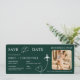 Boarding pass destination save the date card featuring a scannable QR code for sharing wedding details, travel information, or your wedding website. Designed in an airline boarding pass style, perfect for destination and travel theme weddings. A fun and modern way to announce your date and help guests start planning their trip.