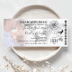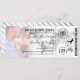 Boarding Pass Hochzeitskarte mit einem Foto des glücklichen Ehepaares, einer Silber-Folie Zielweltkarte, Kompass, Flugzeug und einer personalisierten Hochzeitsvorlage.