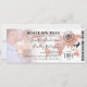 Boarding Pass Hochzeitskarte mit einem Foto des glücklichen Ehepaares, eine Imitate Rose Gold-Folie Zielkarte, Kompass, Flugzeug und eine personalisierte Hochzeitsvorlage.