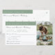 Eleganter Boarding Pass Sage Qr Code Wedding Destination Holiday Card in Salbei mit UAWG und Zeitlinie auf der Rückseite