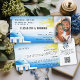 Das trendige Design eines Boarding Pass Foto Hochzeitseinladung mit einem griechischen Zielland-Thema wird Ehepaare und Gäste begeistern und sich auf den großen Tag freuen. Ein sanftes, abgestuftes Aquarellbild gibt den Hintergrund für diese Hochzeit in Urlaubsort, für ein Paar und Gäste, die auf die griechischen Inseln reisen. Vorlage für ein Bild des glücklichen Paares.