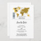 Dieses Design enthält ein Boarding Pass Thema. Es zeigt eine Goldkarte der Welt zusammen mit zwei Flugzeugen, die eine Herzform haben, während sie um die Welt reisen. Dieses Ziel themed Hochzeitsdesign ist Set wie ein Boarding Pass mit dem Datum der Hochzeit personalisiert in den Plätzen. Die Rückseite zeigt den Boarding Pass mit personalisiertem Hochzeitstermin. Ein romantisches Reiseziel-Design mit einer eleganten Touch. Ideal für eine Hochzeit in Urlaubsort, egal wo auf der Welt. Die perfekte Reisen Hochzeit während der ganzen Saison speichern Sie das Date Card Design. Auch die passenden Hochzeitseinladungen und andere Schreibwaren sind verfügbar.