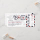 Ein Boarding Pass inspirierte Einladung mit lustigen Pass Briefmarke Details und Luftpost Streifen. In den Farben Navy, Red, Dark Gray und Light Gray gezeigt. Auf der Rückseite finden Sie zusätzliche Platz für alle Hotel-, Reise- oder Website-Informationen.