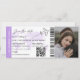 Moderner, minimalistischer Monogramm-Boarding passieren Hochzeitsfahrkarte mit einem schlichten, weißen und braunen Hintergrund, ein Foto des verlobten Ehepaares, ein Flugzeug mit Loop-Trail und eine leicht anpassbare Save the Date Vorlage. Vergessen Sie nicht, den Text auf der Rückseite des Monogramms zu ändern.