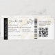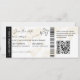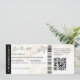 Moderner, minimalistischer Monogramm-Boarding passieren Hochzeitsfahrkarte mit einem schlichten, weißen und braunen Hintergrund, ein Foto des verlobten Ehepaares, ein Flugzeug mit Loop-Trail und eine Save the Date Vorlage, die leicht angepasst werden kann. Denken Sie daran, den Text auf der Rückseite des Monogramms zu aktualisieren.