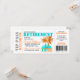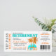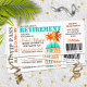 Spaß, tropisches Thema "Boarding Pass" Altersrente Party Einladung. Personalisieren Sie alle Details für Ihre kommende Feier.
