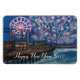 GLÜCKLICH NEUES JAHR! Grafische Malerei von farbenfrohen Feuerwerk an der Promenade am Meer. Erinnern Sie sich an das neue Jahr mit diesem einzigartigen Magneten und senden Sie an einen besonderen.