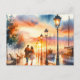 Es erinnert an einen alten romantischen Film. Ein paar spazieren entlang einer Promenade bei Sonnenuntergang.