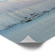 This stunning print features a dreamy morning over the Caribbean Sea with boats and pastel sunrise clouds.