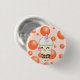 Dieser entzückende Knopf kennzeichnet einen Blasenmilchtee mit boba auf einem Hintergrund der orange Blasen.