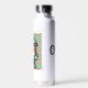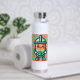 Niedliche Kawaii-Blase aquamarin mit coolem Retrotext mit Vintagem Flair in Orange und Minzgrün. Personalisierte Wasserflasche.
