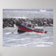 Kleines Fischerboot vor Anker. Gefangen bei rauem Wetter.