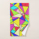 Da sah ich Bauhaus gefolgt von Mondrian und das kam heraus. Hoppla! Eine Wand aus hübschen, mehrfarbigen Dreiecken macht die ultimativen Handtücher für die Badezimmerdekoration. Design-Tipp; Haben Sie ein neutrales Badezimmer mit diesen lebhaften Accessoires!