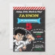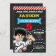 BOY KARATE KID BIRTHDAY INVITATION TEMPLATENIJA BIRTHDAY PARTY, SCHWARZER HINTERGRUND, CHALKBOARD LETTERING, YELLOW, GRÜNE, ROT, BLUE PASTEL FARBEN