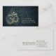 Yoga Meditation Instructor Business Card Template - Elegantes Black and Gold Foil OM Symbol und Bodhi Leaf auf Floral Damask Hintergrund.