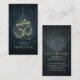 Yoga Meditation Instructor Business Card Template - Elegantes Black and Gold Foil OM Symbol und Bodhi Leaf auf Floral Damask Hintergrund.