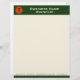 © Sunny Mars Designs - Body Madness Green Vitruvian Muscle Man Silhouette Instruktor 8.5" x 11" Letterhead - Cooler Bürobriefkopf mit einer grünen Silhouette eines Männchens in der Vitruvianischen Position vor einem verbrannten orangen, gezackten runden Hintergrund. Perfektes Werbematerial für Bodybuilder oder Bodybuilding-Konzepte, Personal Trainer, Fitness-Instruktoren und Trainer, für sportliche Muskeltrainer, die Männer in Fitness und Training oder in Gesundheit und Anatomie trainieren.