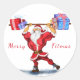 Bodybuilder Santa Funny Weihnachtskleber Runder Aufkleber