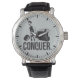 Uhr, Klassische Damenuhr mit schwarzen Lederarmband