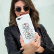 Boho und rustikale Handycase mit handgezeichneter Abbildung von Bögen und Blume in blau.